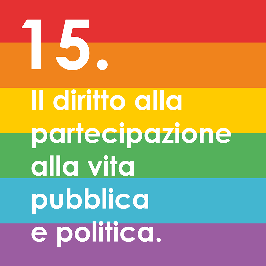 Ogni individuo ha il diritto ad un ambiente che permetta che permetta di partecipare attivamente, liberamente e significativamente e di contribuire agli aspetti civili, economici, sociali, culturali, politici e della vita umana a livello locale, nazionale, regionale ed internazionale. In particolare tutte le persone sono in diritto di partecipare allo sviluppo e all’implementazione di politiche che possano determinare il loro benessere, incluse la loro sessualità e la loro salute sessuale.